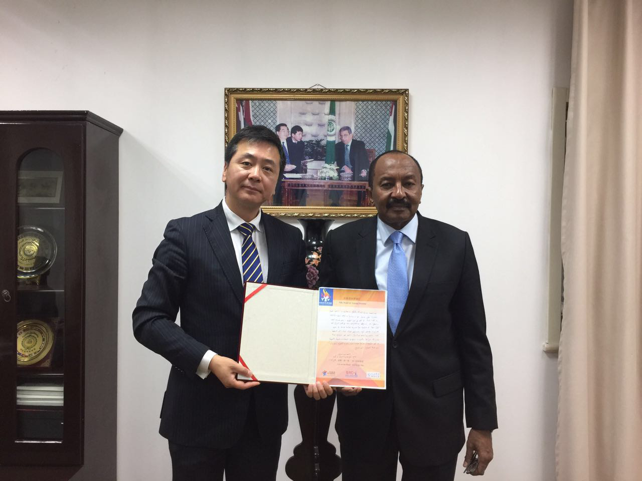 7月19日,丝绸之路城市联盟常务秘书长杜明皓拜会阿拉伯国家联盟驻华代表(大使级)马哈穆德·艾勒艾敏阁下,双方就将于8月11-14日在京举行的“丝路青年梦想汇”活动以及“一带一路”框架内中阿人文交流等事宜进行深入探讨。
